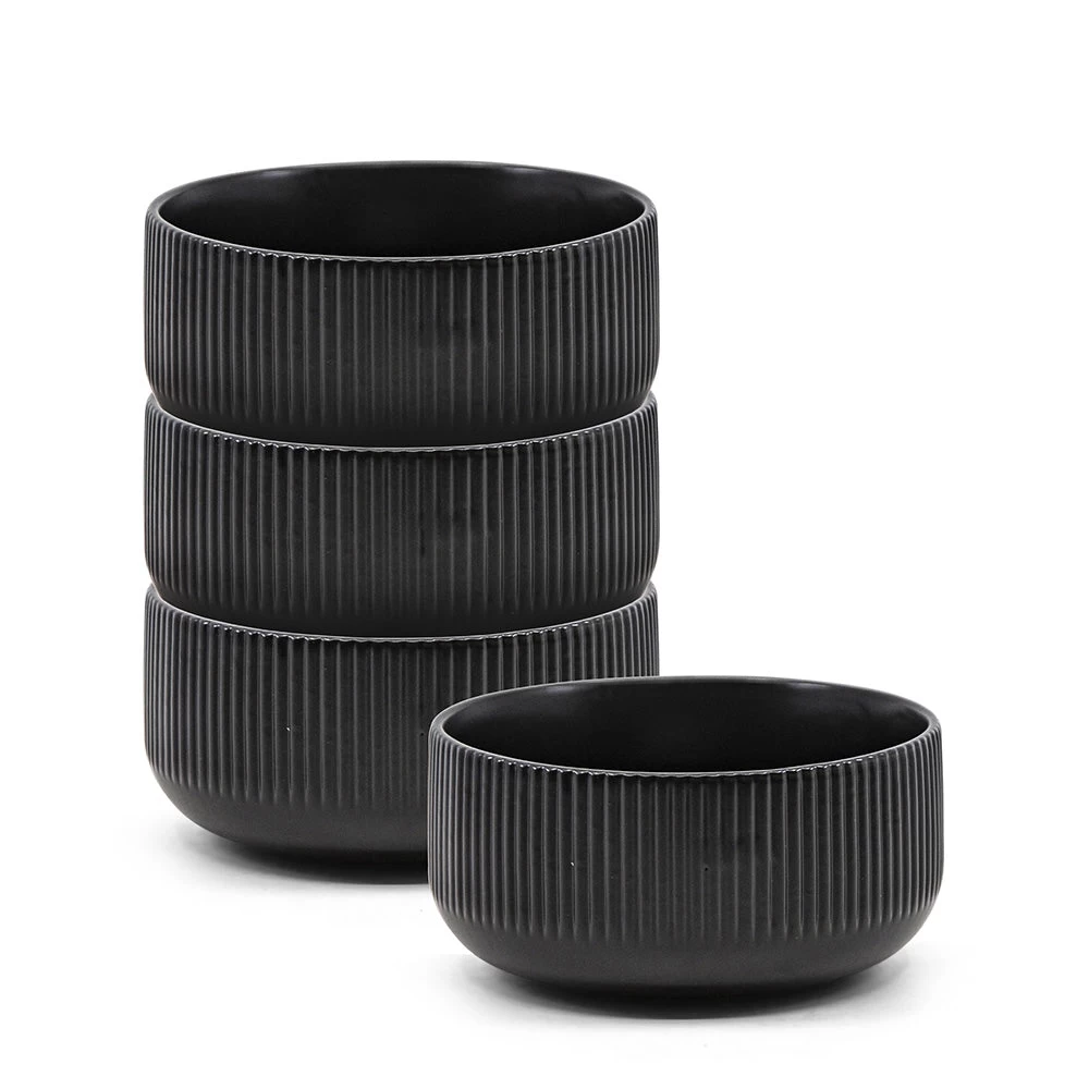 Give your culinary efforts centre-stage appeal with our set of 4 Brae rice bowls. The 12x6cm stoneware bowls in black will bring an effortlessly chic aesthetic to both your everyday and special occasion dining. The bowl features refined matte glazing and striking ribbed textures and will look best paired with other pieces from the Brae collection.