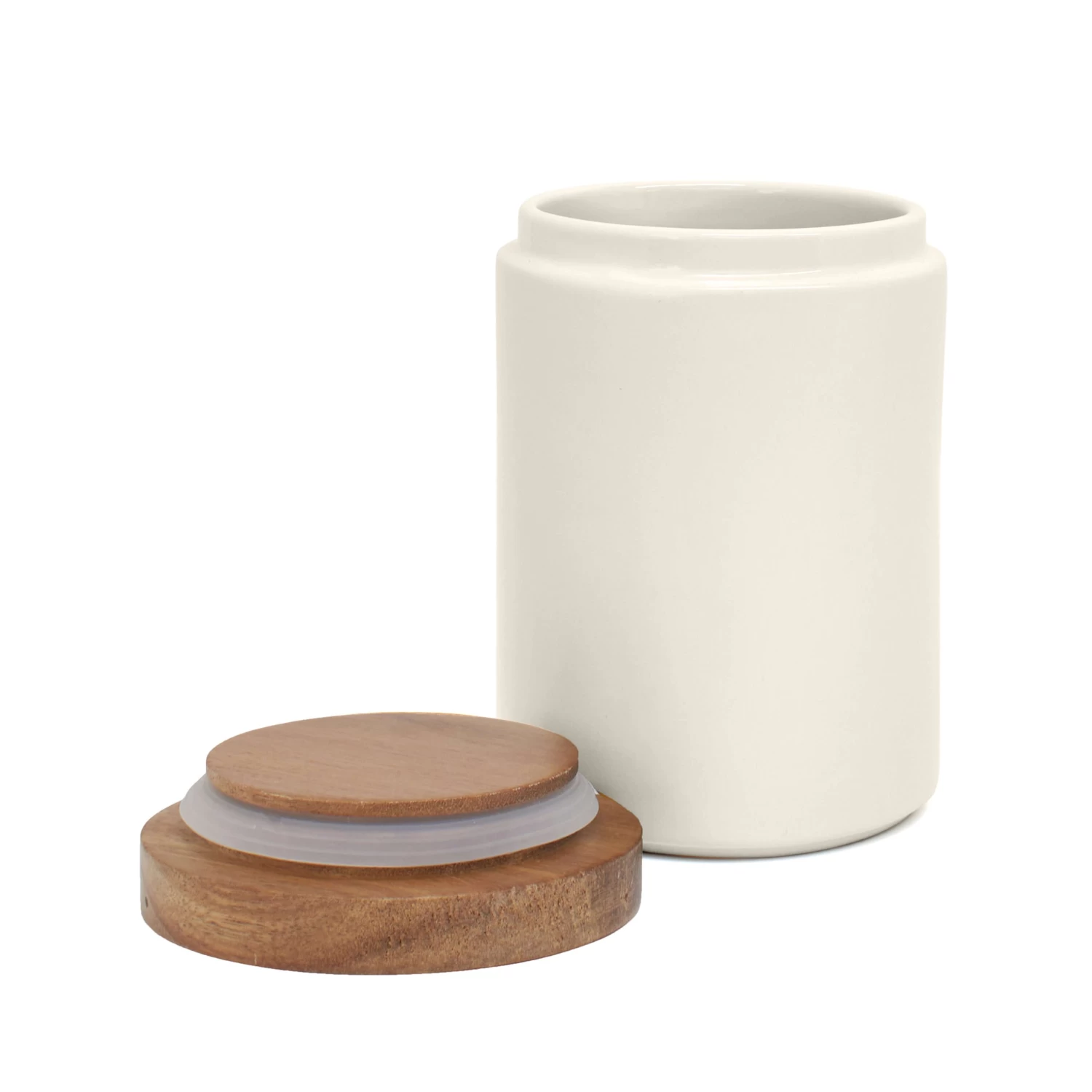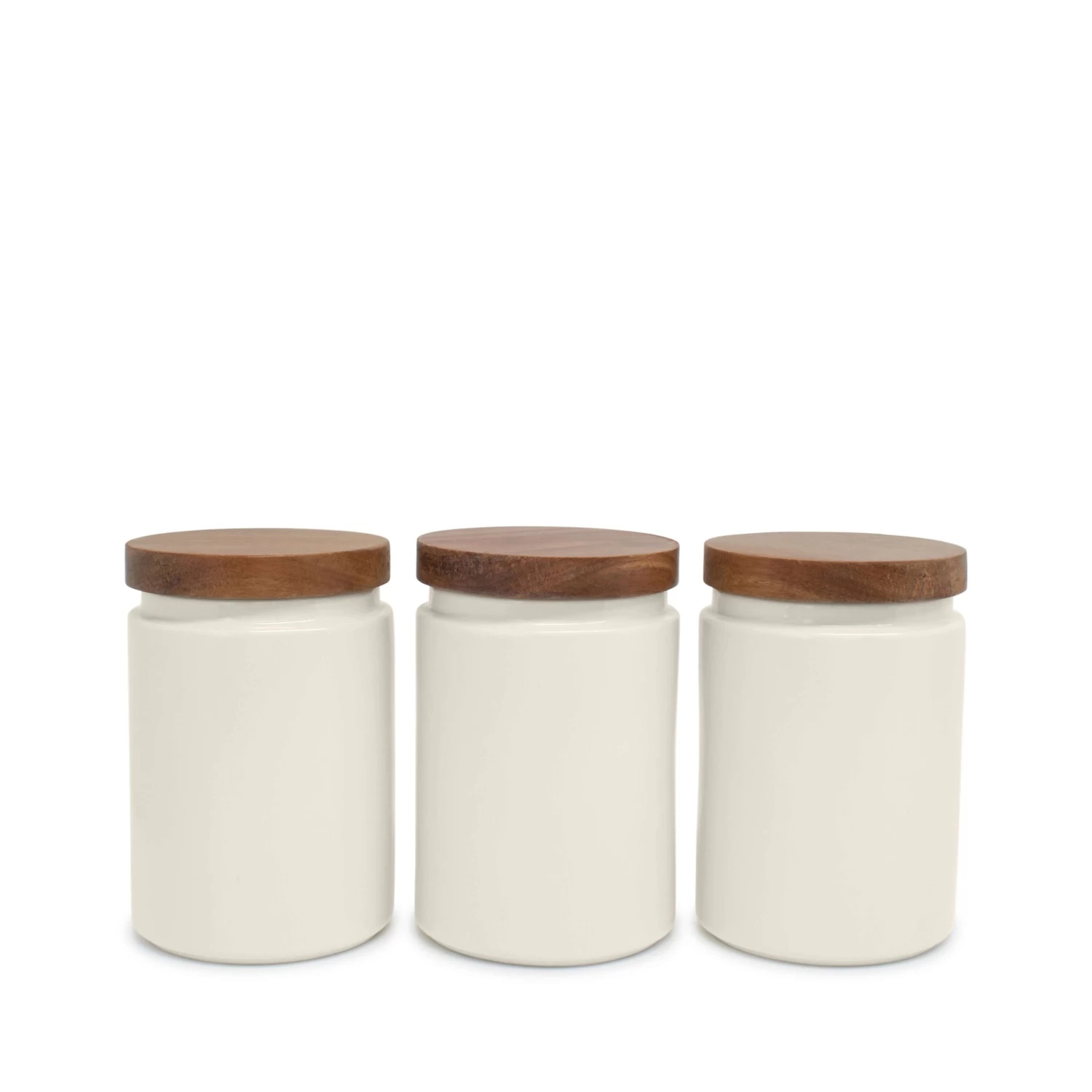 Do you ever just stand in front of your pantry dreaming of organised shelves? Stare at your kitchen imagining clutter-free benchtops? Look at your bathroom thinking where to store all those little bits ‘n bobs? Well, we are revolutionising home organisation and calling it – canisters aren’t just for holding dry food anymore! At 600g capacity, our set of three Industry stone canisters are perfect for those traditional dry foods. But, they also make a great storage solution for cotton balls, q-tips and other bathroom items. You can even use them to store your jewellery or craft supplies! Made from stoneware and finished with a mix of matte and shiny glaze, their acacia wood lid seals tight for freshness. So, now you can make any space look like it belongs in a high-end home magazine – even if you are just storing your laundry powder in them!