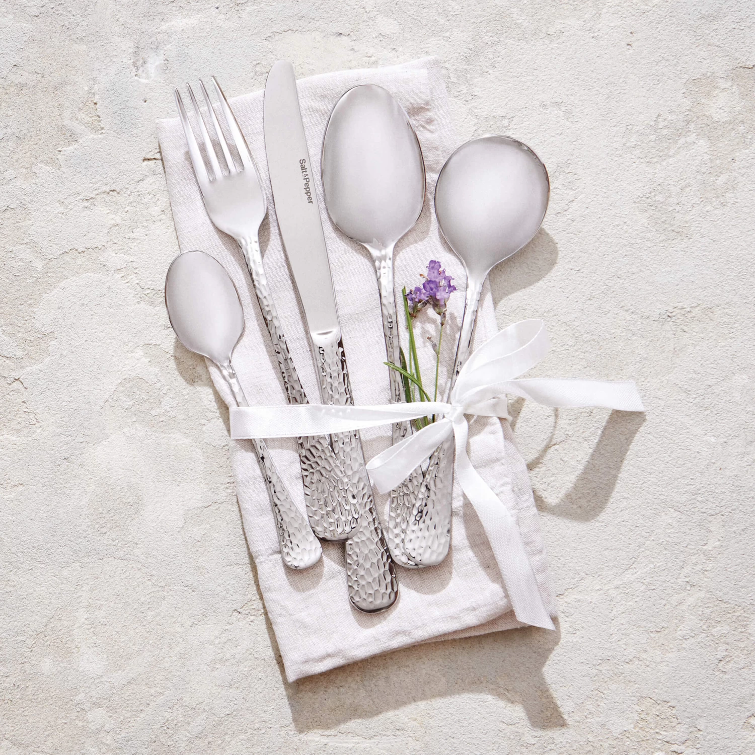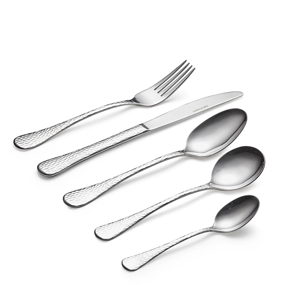 Are you obsessed with hammered jewellery? So are we! Bring the style to dinner with our Moscow cutlery set, featuring a unique hand-hammered finish. Our Moscow set is made using the highest quality 18/0 stainless steel, that’s dishwasher safe! (Handy!) Each 5-piece place setting includes: dinner fork, knife, spoon, soup spoon and teaspoon. Our 30-piece set is fit for any occasion – whether bookclub dinner or a celebratory lunch with friends.