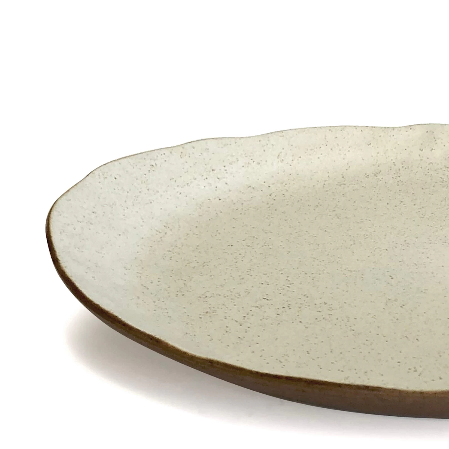 Brace yourself for a dining adventure like no other with our Nomad dinner plate! Hand-crafted from fine pottery, our plate brings the beauty of nature to your table with its earthy, natural color. Its unique dimple design and raw edge adds a rustic charm to any setting – with family or friends. Plus, it’s both microwave and dishwasher safe (though we think hand washing is more fun!). Best of all, you can mix and match pieces to create a one-of-a-kind collection that’ll have everyone clamouring to join your Nomad tribe!
