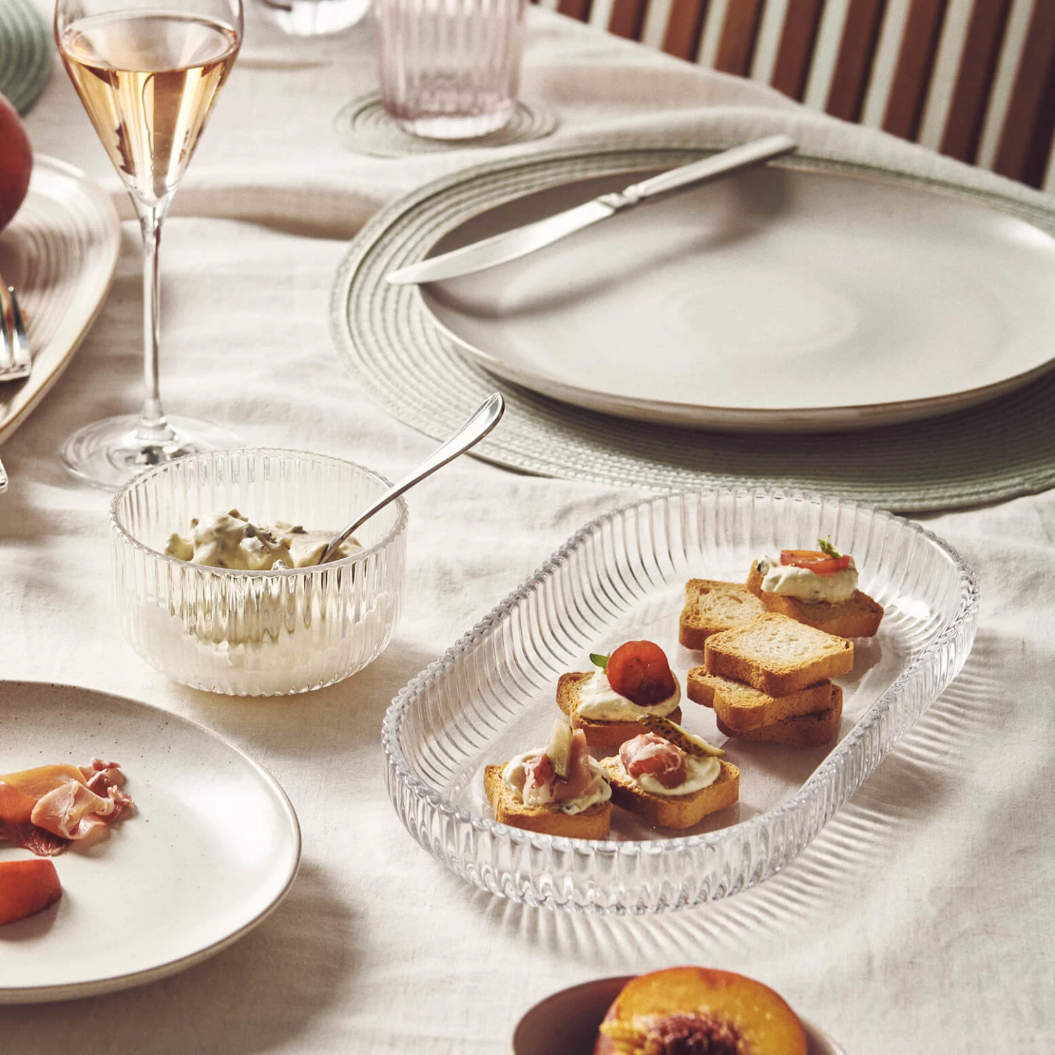 Are you rolling out the welcome wagon – and the home-made snacks – this weekend? (You’re a saint!) Make sure to be the hostess with the mostest thanks to our set of three Ogin bowls. Crafted from chunky clear glass, their ribbed effect catches the light and makes your culinary creations sparkle. Because we all know good things come in threes.