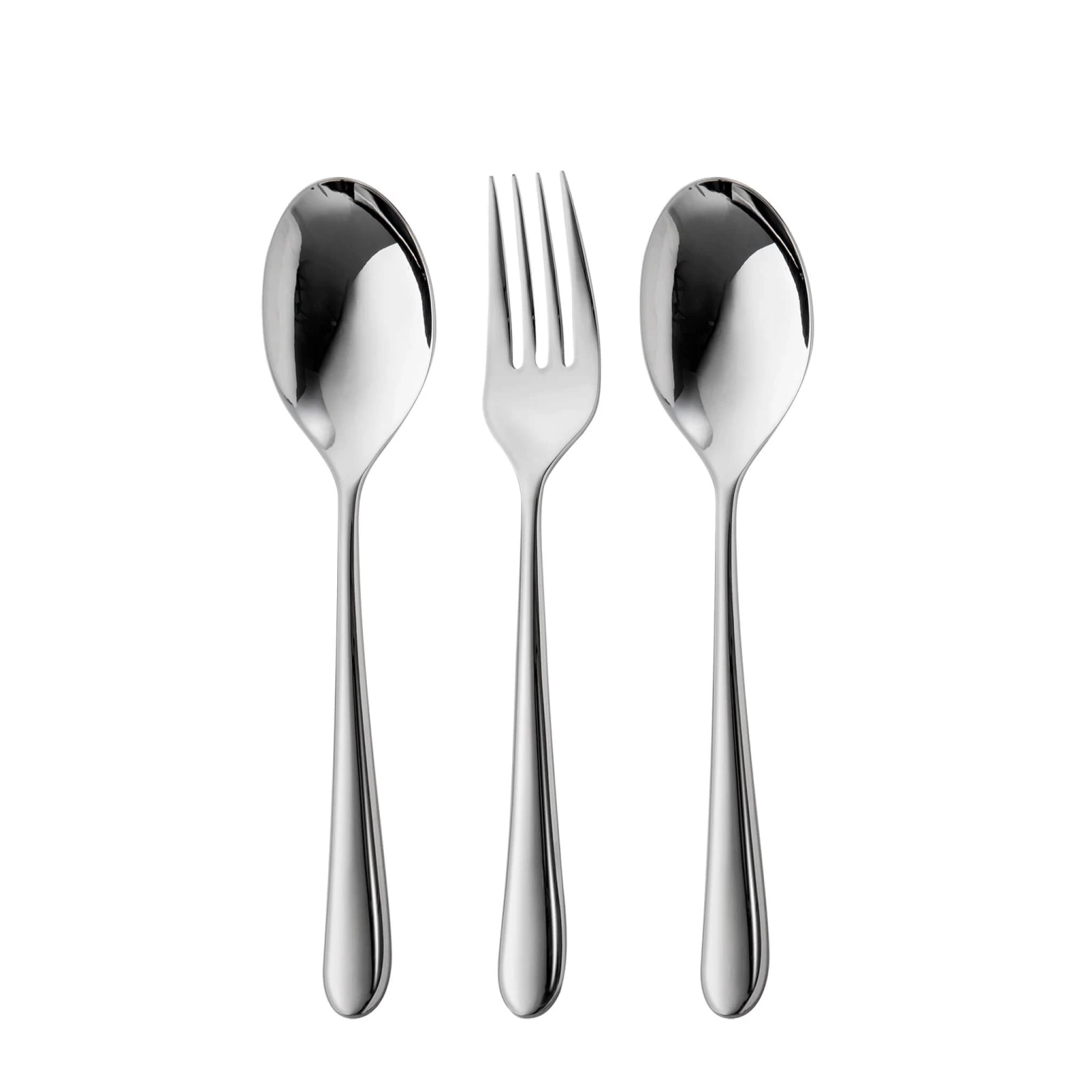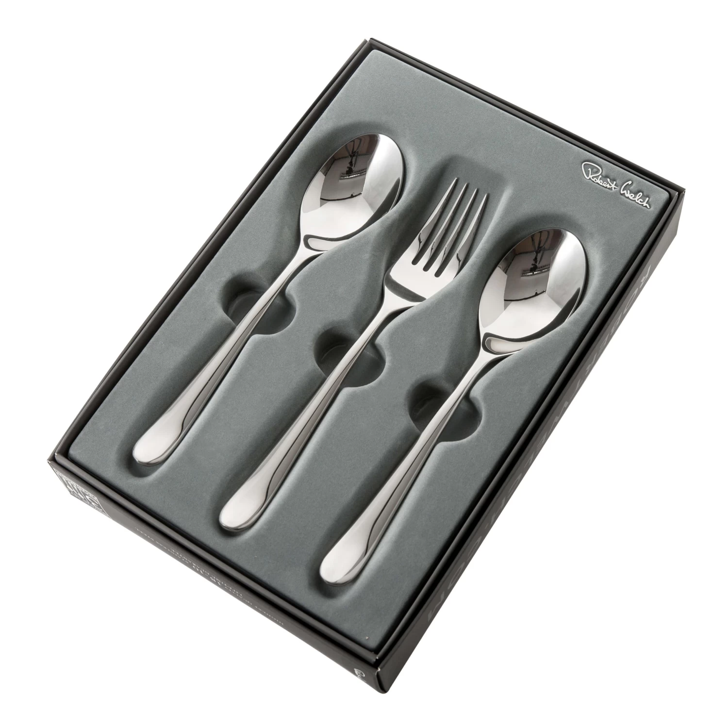 A 3 piece from the elegant and contemporary Kingham range. Mirror-polished finish and made from specially hardened stainless steel. Robert Welch Kingham cutlery exhibits a clean and elegant profile and a contemporary classic aesthetic. Spoons and forks are made using the highest quality 18/10 stainless steel. Knife blades are made from specially hardened stainless steel to provide the finest possible cutting edge.All Kingham cutlery is available with a mirror finish, has a lifetime guarantee and is dishwasher safe.