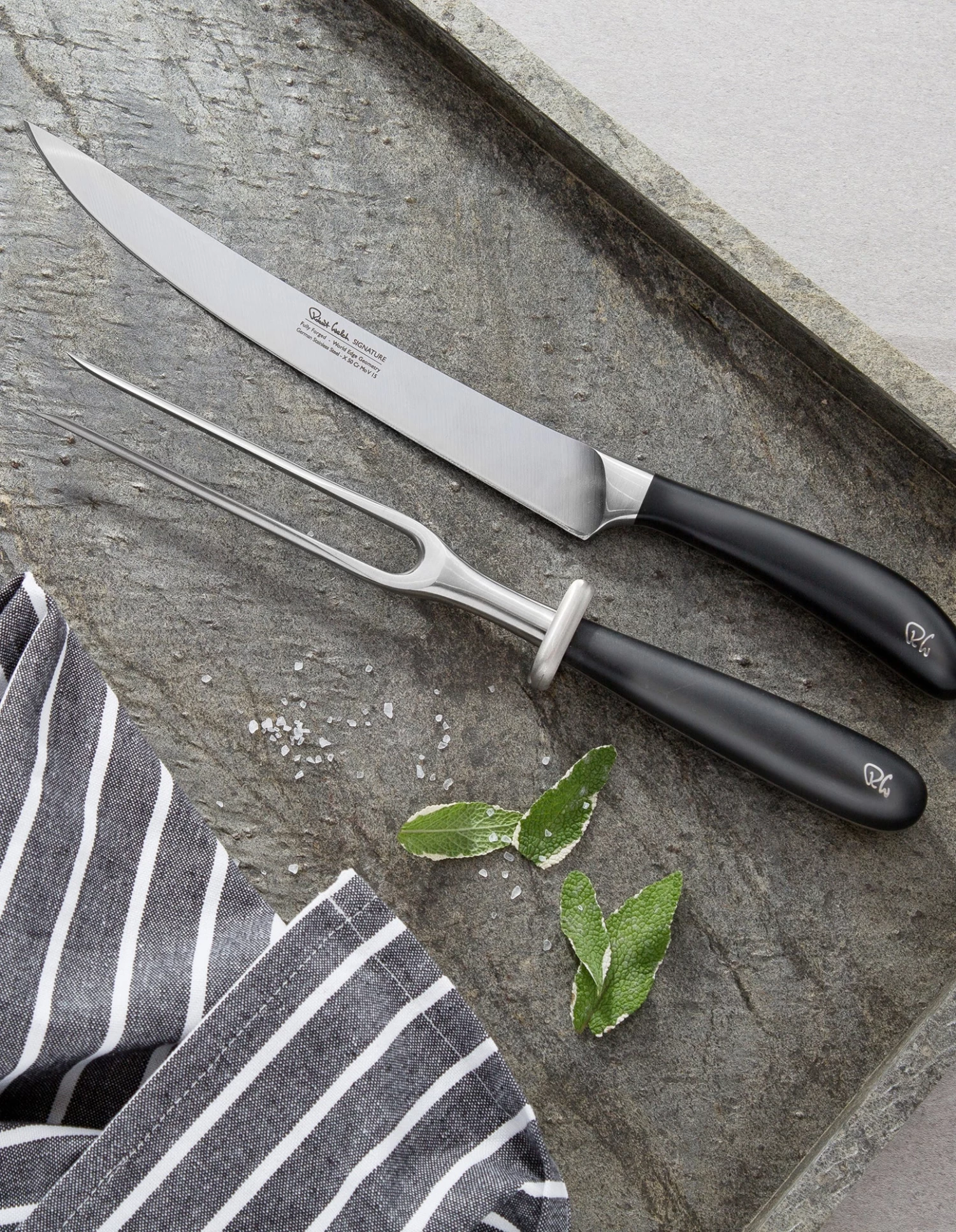 Robert Welch’s SIGNATURE 18cm carving fork is ideal for holding meat and poultry still whilst carving and also be used to lift and turn meats during cooking. Designed in consultation with professional chefs, this award winning kitchen knife features a fully forged German DIN 1.4116 stainless steel blade with a full tang for extra strength.