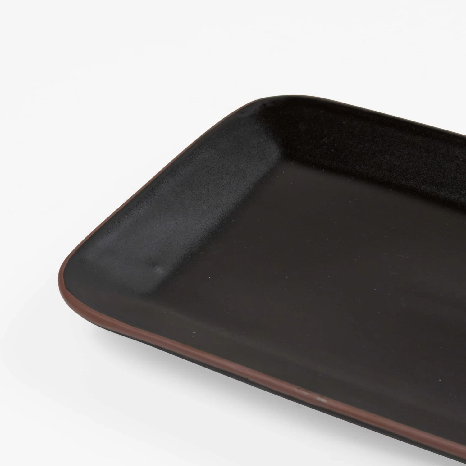 Experience the art of sharing with our Shari platter, a serving plate that seamlessly combines elegance and functionality. Its smoothly-crafted, black rectangular surface and subtly upturned sides create a pottery masterpiece. Finished with a matte reactive glaze, our platter serves as the perfect canvas for presenting your bite-sized delights, a spread of cheeses or mouth-watering desserts. Plus, it’s dishwasher and microwave safe. It’s time to gather, plate up and create unforgettable dining experiences with Shari.